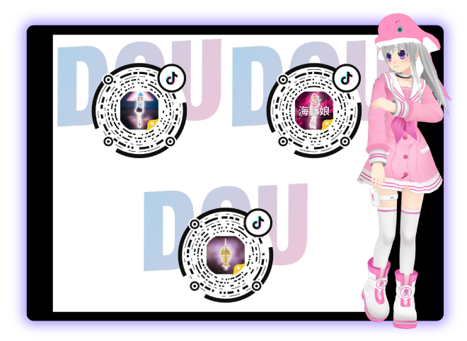 “加密咸鱼”AR特效,欢迎来和咸鱼娘互动热舞!用抖音扫描二维码即可体验。